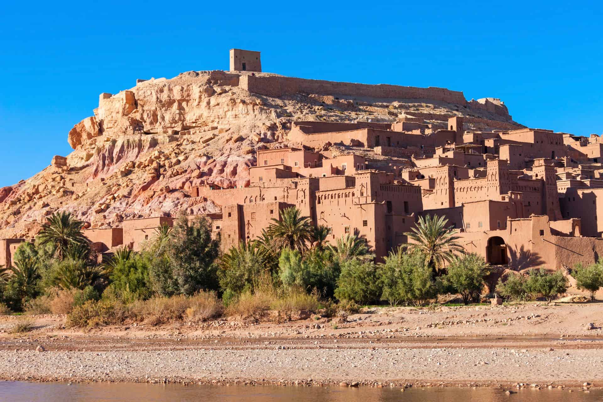 A través de las altas montañas del Atlas, mientras cruzas por un camino sinuoso, te encontrarás con el pueblo de Ait Ben Haddou y su pintoresca Kasbah (declarada Patrimonio de la Humanidad por la UNESCO en 1987), y esta ciudadela fue el hogar de muchas películas famosas. como: (Gladiator, Sahara, Indiana Jones, Babel)