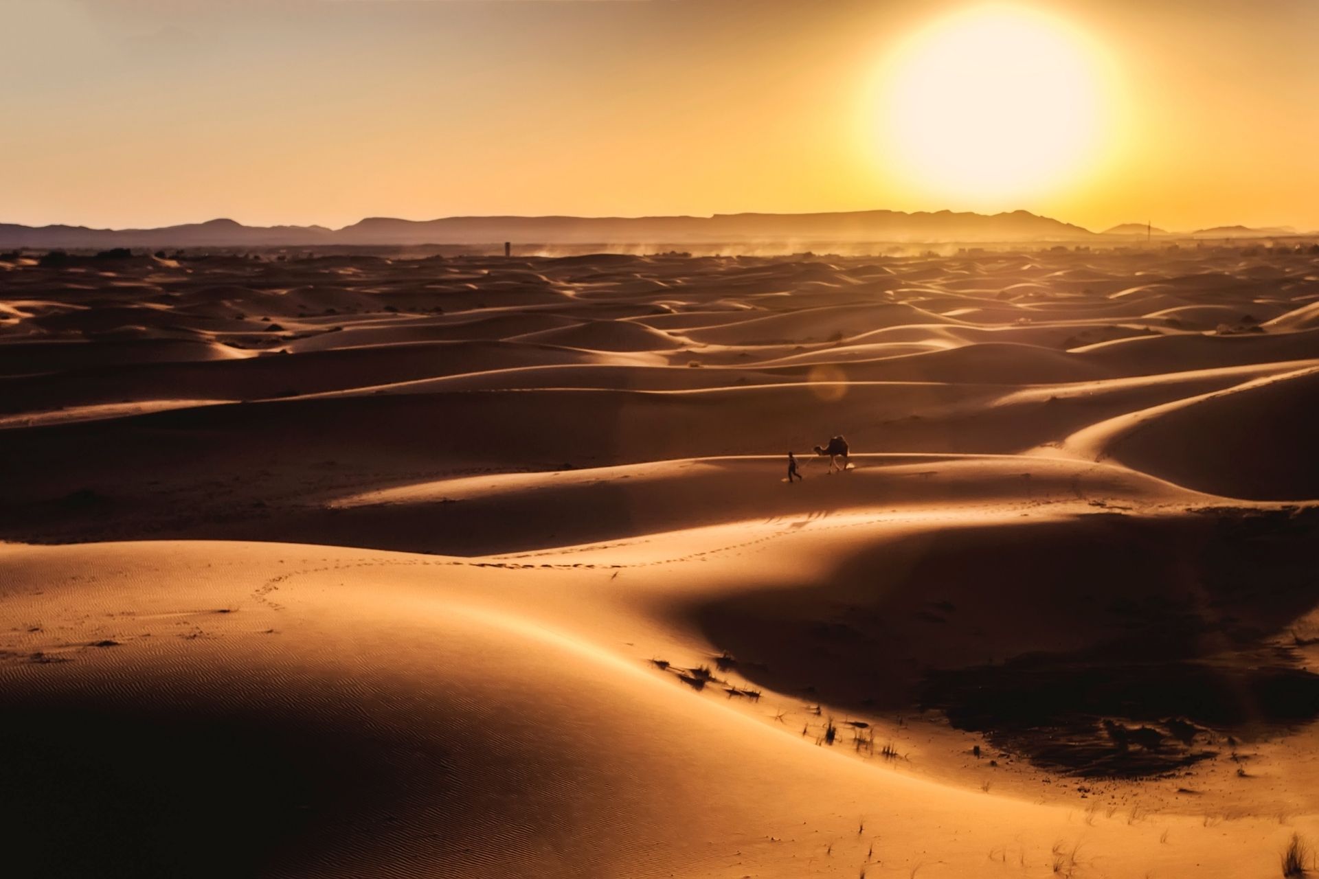 After a glass of mint tea, we’ll ride a camel to the camp in the middle of the Erg Chebbi Sand Dunes. The trip takes around 1hr from hotel to the camp. where we continue the spirit of the nomadic Berber lifestyle. After dinner, we will meet around the campfire and enjoy the voice of beating drums under the stars by traditional Berber.